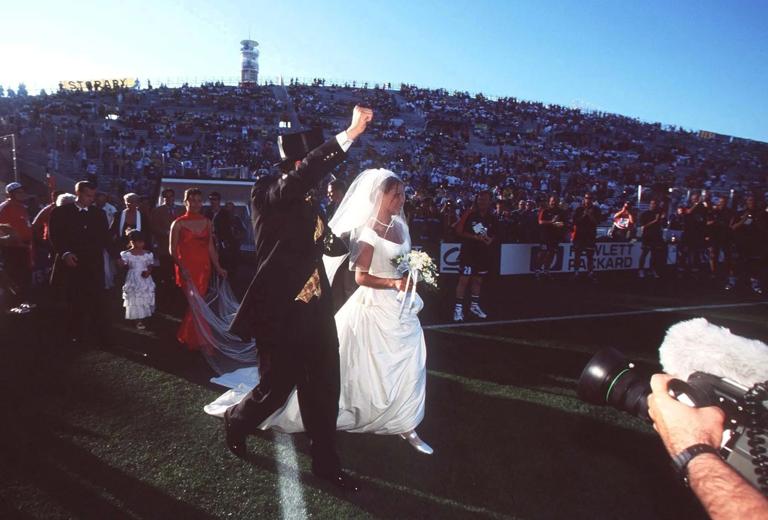 Unbelievably, one hour before the match kicked off, a wedding took place on the Stade Velodrome turf. Norwegian Oyvind Ekkland went on holiday to Rio de Janeiro in 1990 and was kicking a ball around on Ipanema beach when he cast his eyes on his own ‘Girl From Ipanema’. Rosangela de Souza was soon living with him in Oslo. When Brazil and Norway were drawn In Group A together in December 1997, Oyvind came up with the crazy idea of them getting married on 23 June 1998 at the Velodrome, and it somehow came off!